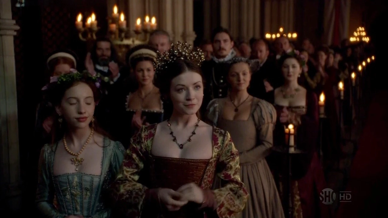 Elizabeth's personality is not shown to anything of the same degree as her older half-sister Mary, as she is first depicted as a newborn in episode 2.03 and as a little girl in most of Seasons 2 and 3; but it is clear from Anne Boleyn's intelligence, ambition and boldness, traits that; would characterize Elizabeth as queen that; she takes strongly after her mother, as when she naively states to her sister Mary that; she does not think boys should be preferred over girls. While Elizabeth has happy relationshipsl with her half-siblings Mary and Edward, as well as her step-mothers, she remains emotionally distant from her father for most of the series.